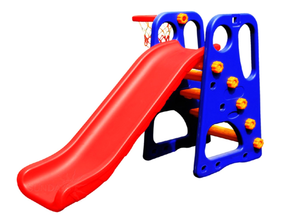 Sundays QC-05011 – это замечательный детский аттракцион с крутой горкой для спуска и баскетбольной корзиной. С этой горкой вы подарите своим детям отличную площадку для веселый игр и соревнований в меткости. Конструкция сделана безопасной даже для самых крох: практичные перила, рифленые нескользкие ступеньки, защитные бортики по бокам спуска. При помощи перестановки уровня высоты вы сможете сделать спуск этой горки более покатым для катания деток помладше. Предельная нагрузка Sundays QC-05011 – 35 кг.