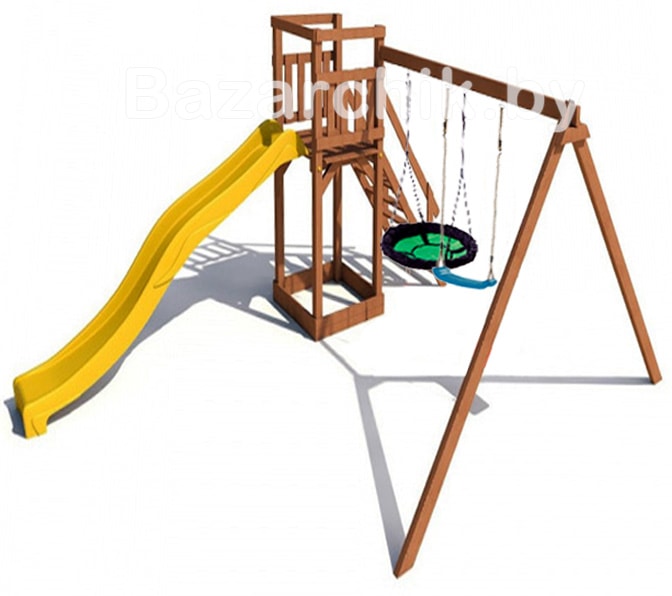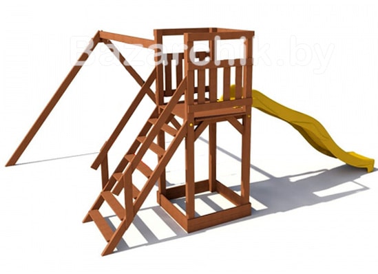Отличный детский игровой комплекс с пластиковым скатом и двумя качелями для более старшего детского возраста Standart и Swibee. Конструкция комплекса представляет собой деревянную игровую башню с лестницей, песочницей пластиковым скатом с возможностью подключения воды, стойкой для качелей или других аксессуаров для детской площадки - веревочной лестницы, каната, гимнастических колец и т.д. Скат пластиковый устанавливается на высоту 150 см. Цвет качелей и ската можно выбрать любой из представленных на сайте.