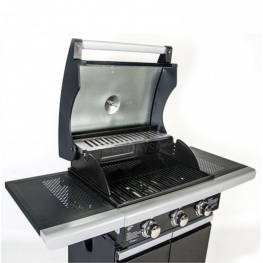 Газовый гриль-барбекю CHEF-1 имеет надежный и долговечный стальной корпус. В качестве топлива используется газ (бутан, пропан или их смесь). Газовый уличный гриль отличается качественным и, главное, равномерным прогревом, приготовляемых продуктов. Ещё одно важное преимущество газового гриля – это его мобильность, при наличии баллона с топливом пикник можно организовать в считанные минуты. Под решеткой для гриля расположены три газовые горелки с суммарной мощностью 9 кВт. Основная решетка имеет размеры 60х42 см, также имеется стальная решетка для подогрева готовых продуктов с размерами 60х12 см. Конструкция 53531 включает удобные полочки по бокам, на них можно класть как готовые шашлыки, так и подготавливать сырые продукты перед жаркой. Колеса оборудованы стопором, чтобы исключить случайное перемещение печи.