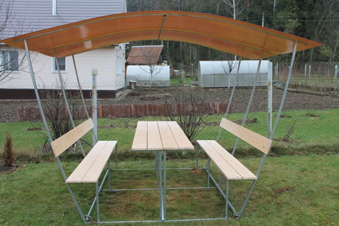 из оцинкованной сварной трубы 40х20 мм и 20х20 мм и собирается с помощью болтов и гаек. |