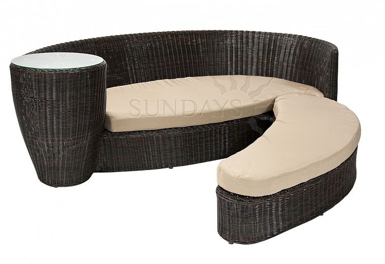 10461 Диван трансформер с приставным столиком и подушками VERDI, рама алюминий, искуственный ротанг, цвет черный