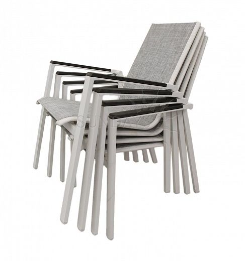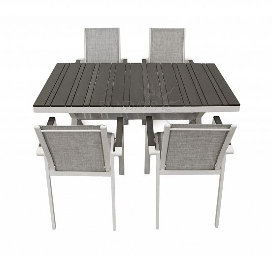 Комплект садовой мебели Avon 22118, представлен четырьмя стульями и столом с прямоугольной столешницей, выполненной из искусственного дерева. Основа данного садового комплекта изготовлена из алюминия, это лёгкий, прочный и стойкий к коррозии материал. Сиденья выполнены из материала Тextilene. Данный материал наилучшим образом подходит для садовой мебели, так как не впитывает влагу, пропускает воздух, неприхотлив к солнечным лучам и кремам для загара. Особо комфортабелен, так как принимает форму тела сидящего. Данный комплект мебели будет радовать вас и ваших близких долгие годы. Набор мебели имеет белый цвет в сочетании с темно-серыми оттенками. Avon 22118 отлично подойдет для создания уютного уголка в саду вашей дачи или загородного дома, он сочетает в себе надежность и лаконичный дизайн