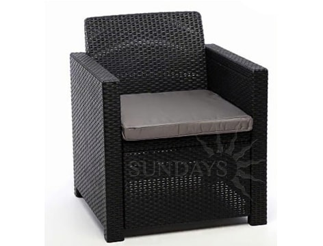 Комплект мебели Keter Alabama set - элегантная мебель с текстурой, напоминающей плетение из ротанга, который состоит из двух кресел, дивана и квадратного стола. Модель комплектуется мягкими подушками в стильной цветовой палитре. Данный комплект отлично впишется в интерьер любого летнего кафе, ресторана или дачного участка. Комплект изготовлен из прочного погодостойкого пластика, имитирующего ротанг. Благодаря стойкому полипропилену цвета не выгорают на солнце и не бледнеют со временем. Чехлы на подушках выполнены из плотной ткани, так же устойчивой к атмосферным явлениям.