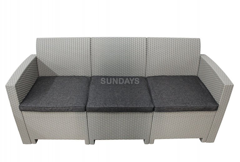 Диван садовый Sundays SF2-3 светло-серого цвета выполнен из прочного погодоустойчивого пластика с имитацией плетения. Диван Sundays SF2-3 не боится дождя или снега, не выгорает на солнце, прекрасно переносит перепады температур. Мягкие подушки выполнены из прочного полиэстера, чехлы имеют замки. Отличительной особенностью данной мебели является моментальная и простая сборка, а так же данная модульная мебель легко компонуется между собой исходя из ваших потребностей. Малый вес позволит без усилий перемещать мебель по саду или террасе. На диване Sundays SF2-3 с комфортом разместится до 3-х человек.