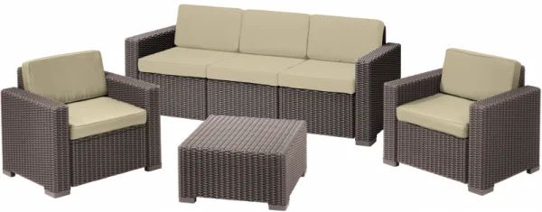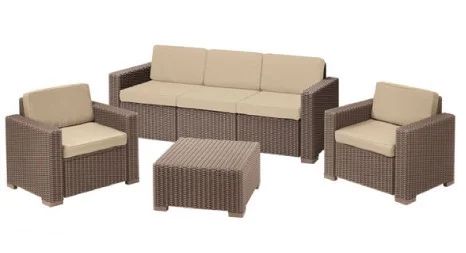 Отличительная черта комплекта мебели из пластика California 3 Seater – это цвет каппучино, в котором представлен данный комплект. Приятный светлый цвет делает мебель уютной и стильной.