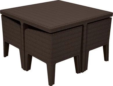 Его важнейшим преимуществом является модульная конструкция, которая позволяет скрыть стулья под столом, что позволит сэкономить место на террасе или балконе. Глубокие сиденья с мягкими подушками обеспечат максимальный комфорт использования.