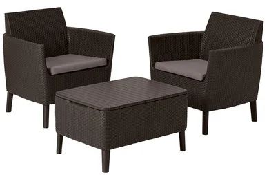 Современная форма компактного комплекта мебели Salemo Balcony set украсит балкон, небольшую веранду или террасу. В комплекте два вместительных кресла и функциональный столик с возможностью хранения. Комплект выглядит привлекательно и натурально благодаря переплетению под ротанг. Выполнен набор из погодостойкого полипропилена, с защитой от УФ-излучения, что позволяет мебели служить долго , не теряя цвет и форму.
