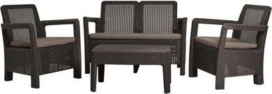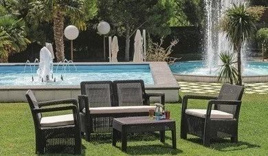 Tarifa Set - это мебельный гарнитур со слегка закругленной фактурой поверхности, напоминающей ротанговое переплетение. Набор состоит из двух кресел, двухместной софы и прямоугольного столика. Набор идеально подходит для организации семейного гриля или вечеринок.