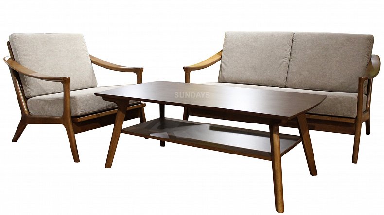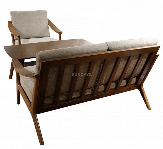 Sundays HARRISON RT639/2 состоит из двухместного дивана, кресла и столика. При производстве данного комплекта мебели использовалось каучуковое дерево (гевея). Поскольку гевея дерево тропическое и растет во влажном и жарком климате, то изделия из древесины гевеи обладают высокой устойчивостью к повышенной влажности и высоким температурам. Оба дивана в данном комплекте являются не раскладными, однако они обладают рядом преимуществ. В статичных моделях спинки являются более комфортными и удобными, так как не участвуют в раскладной конструкции и не исполняют роль функциональной детали в спальном месте. Несмотря на то, что диван не раскладной, его можно использовать как полноценное спальное место, благодаря блоку независимых пружин. Пружины действуют независимо друг от друга, поэтому нагрузка от лежащего на диване тела равномерно распределяется по всей поверхности, способствуя комфортному отдыху. В спинке дивана используется пена высокой плотности, которая обеспечивает максимальный комфорт.