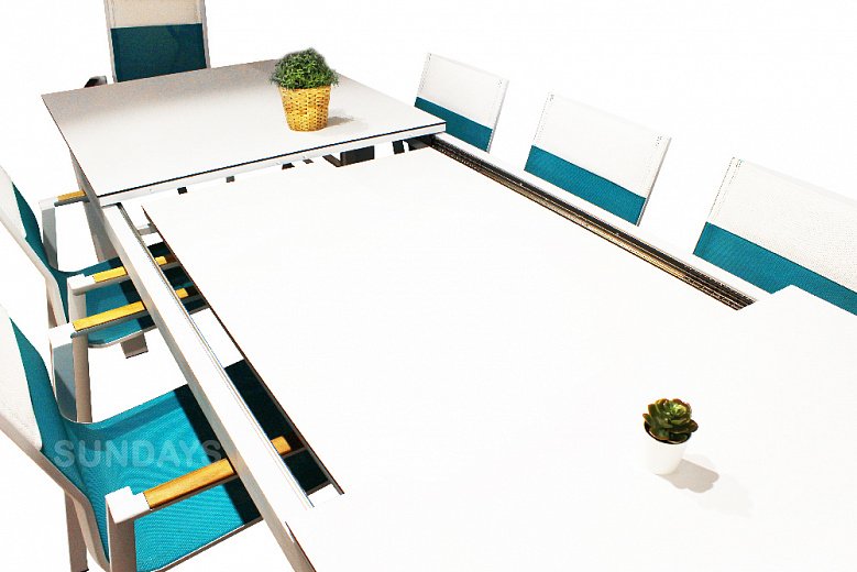 Sundays LENO G3020 - это комплект садовой мебели премиум-класса, который состоит из большого раздвижного стола и 8-ми стульев. Каркас стола выполнен из прочной профильной алюминиевой трубы 80х25мм, а каркас стула - 30х30мм. Алюминий является передовым материалом в производстве садовой мебели, данный материал погодоустойчив, не подвержен коррозии, выдерживает большие нагрузки при небольшом весе. Стулья штабелируются, что позволяет их компактно хранить или транспортировать. Стол имеет длину 220см в сложенном виде, удобный раздвижной механизм позволяет увеличить длину до 330см. Мебель Sundays LENO станет отличным дополнением в вашем саду или на террасе и поможет с комфортом разместить до 8-ми человек.