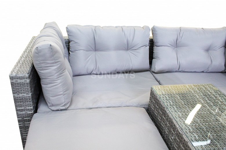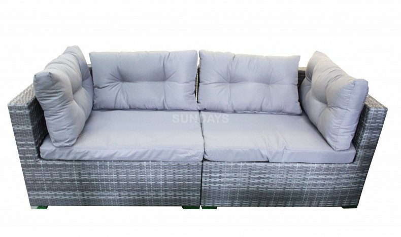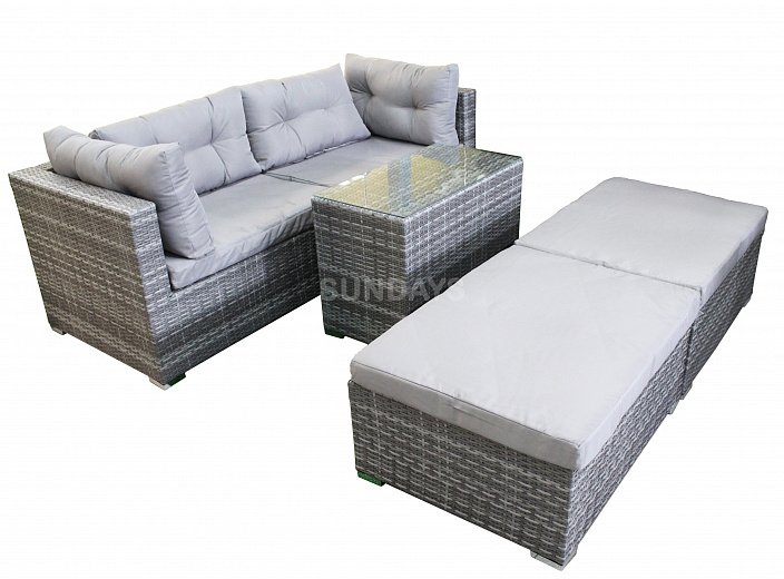 Комплект садовой мебели Sundays LUC-WK10 - это мебель для сада со множеством трансформаций! Из модулей можно составить не только большой диван для четырех человек, место для чаепития, но и целую лаунж-зону для приятного времяпровождения. Каркас мебели выполнен из прочной алюминиевой трубы и оплетен искусственным ротангом. Искусственный ротанг гарантирует вам долговременное использование мебели без потери первозданного вида - материал не выгорает на солнце, не боится перепадов температур, отлично переносит сырость. Подушки имеют съемные чехлы из полиэстера, которые легко постирать и они быстро сохнут. Столешница выполнена из закаленного стекла толщиной 5мм. Мебель Sundays отлично подойдет для использования на открытой террасе или гармонично будет смотреться в зелени сада.