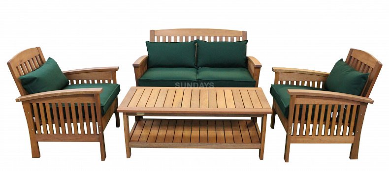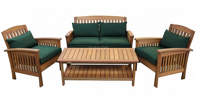 Комплект садовой мебели Sundays MAJESTIC 89342/89343/89344 выполнен из акации с органической восковой пропиткой Teak Oil Wax на основе натурального тикового масла золотистого оттенка и состоит из двухместного дивана, двух кресел и большого журнального стола с удобной полкой для хранения книг, журналов и прочего. Мебель из акации превосходно подходит для использования под открытым небом или на крытой террасе, дерево акации плотное и не теряет своих качеств на протяжении многих лет использования. Мебель прекрасно переносит влажность и УФ-излучение. Подушки выполнены из прочного полиэстера, имеют съемные чехлы - благодаря этому их легко стирать и сушить. Комплект садовой мебели Sundays MAJESTIC 89342/89343/89344 станет излюбленным местом для приятного времяпровождения всей семьей.
