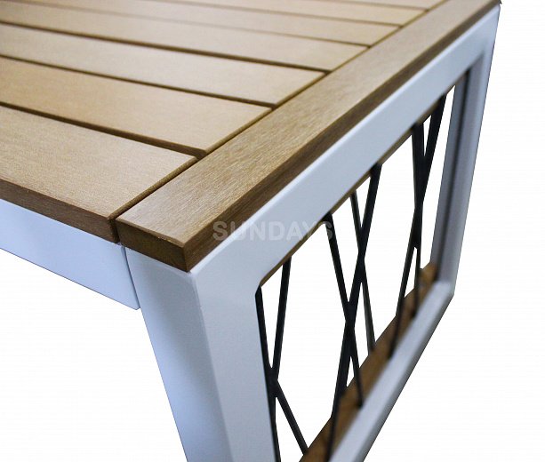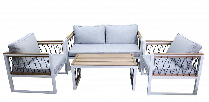 Премиальный комплект садовой мебели Sundays Shanghai KF-19013 выполнен из профильного алюминия размером 40х40мм и толщиной 2мм. Комплект мебели состоит из двухместного дивана, 2-х кресел и журнального столика. Столешница и подлокотники изготовлены из дерева со специальной пропиткой. Комплект декорирован синтетическим жгутом. Мягкие подушки имеют съемный чехол, который можно легко постирать. Мебель полностью погодоустойчива - каркас не подвержен коррозии, дерево не выгорает на солнце. Благодаря небольшому весу мебель легко перемещать или транспортировать.