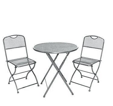 Размеры: стол- D ок.60 см, H 72 см, стул - 42 х 48 х 86 см. Размер упаковки: 99 х 84 х 28 см Цвет : серый. Комплектация: стол, два стула