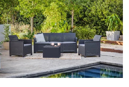 • Набор уличной мебели (трехместная скамья,стол, два кресла) Elodie 5 seater Set, графит Набор уличной мебели (трехместная скамья,стол, два кресла) Elodie 5 seater Set, графит