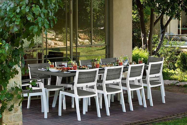 Стол Harmony Extendable – стильный раскладной стол, для особых случаев. Современный дизайн и максимальный комфорт в использовании стола позволяют без труда разместить большие компании, организовать семейные встречи и вечеринки. Стол имеет высокую стойкость к повреждениям и неблагоприятным погодным воздействиям, устойчив к действию УФ-лучей, не деформируется, легко раскладывается и чистится. Благодаря стойкому к высоким температурам полипропилену, цвета не выгорают и не бледнеют.