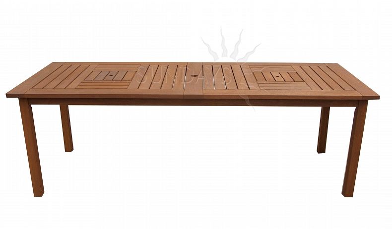 Sundays 89425 – это практичный и надежный стол для уличного использования. Этот стол классической прямоугольной формы имеет длину 228 см, что позволит собраться за ним большой семье или компании друзей до 8 человек. Необходимо отметить наличие в центре стола контейнеров для растений, куда можно высадить живые цветы. Изготовлен стол из массива акации. Древесина акации отличается высокой прочностью и является превосходным материалом для садовой мебели. Этот материал хорошо сохраняется при перепадах температур, под воздействием солнца и при попадании атмосферных осадков. Стол имеет красивый светло-золотистый оттенок, а так же четкий и красивый древесный рисунок. Для того чтобы стол не терял своих эстетических качеств, его нужно несколько раз в год обрабатывать древесным маслом. Так как древесина - это органический материал, необходимо иногда проверять и закручивать места соединений. Чтобы комплект прослужил Вам долгие годы нужно убирать его на хранение в течение зимы.
