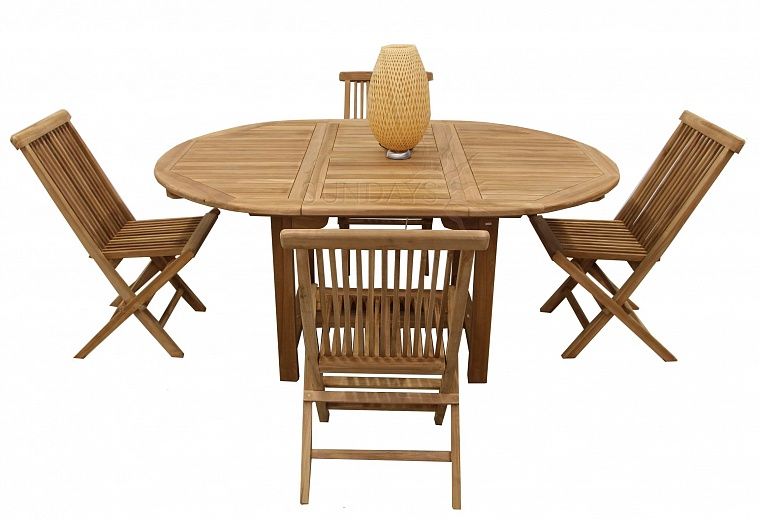 Sundays TGF-013/001 - это практичный и надежный комплект садовой мебели, способный вместить даже большую компанию. Набор мебели комплектуется овальным раздвижным столом и стульями. Стулья TGF-001 компактно складываются для хранения или транспортировки. Комплект изготовлен натуральной древесины тикового дерева, в производстве садовой мебели использование древесины тикового дерева очень популярно, так как она хорошо переносит любые изменения погодных условий, устойчива к всевозможным вредителям и неприхотлива в уходе. Мебель из данного материала имеет однотонный золотистый оттенок и плотную внутреннюю структуру, такой комплект садовой мебели отлично впишется в природный ландшафт вашего сада.