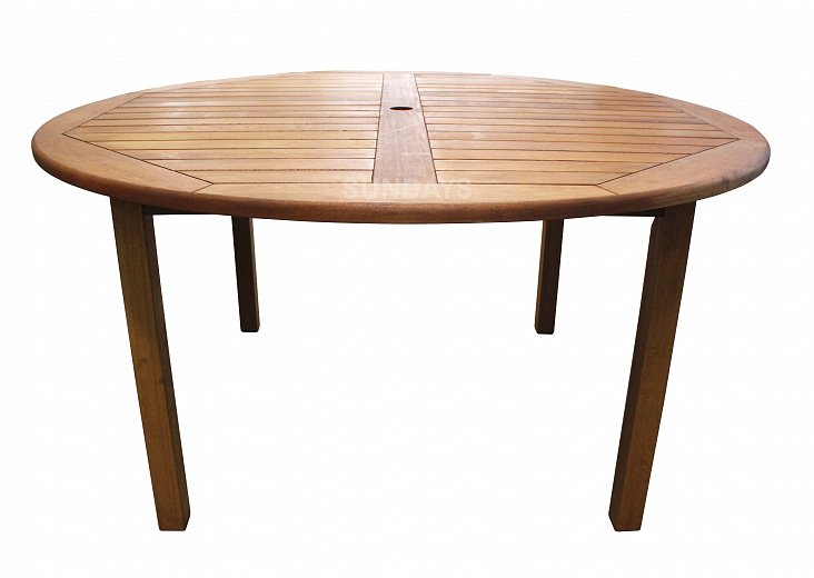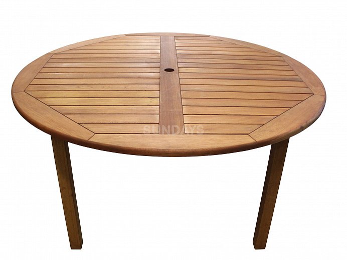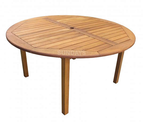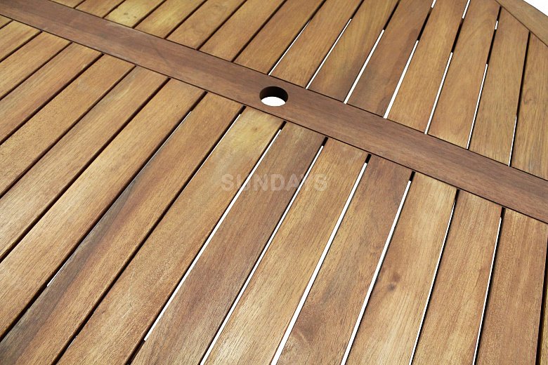 Садовый стол Sundays FAMILY 88010 выполнен из плотного дерева акации. Дерево акации обработано специальным воском Teak Oil Wax на основе натурального тикового масла, что придает мебели однотонный золотистый оттенок, защищает ее от выгорания, а также повышает уровень прочности. Столешница диаметром 150 см имеет отверстие для садового зонта. Большой устойчивый деревянный стол Sundays FAMILY 88010 позволит с комфортом разместить до восьми гостей.