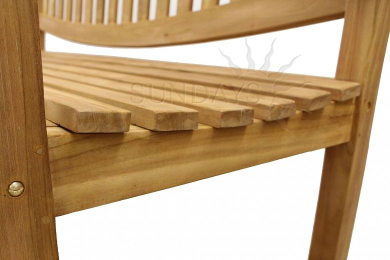 Sundays LION TGF-029 B – это практичная двухместная скамья, изготовленная из натуральной древесины тикового дерева, которая является лучшим материалом для изготовления садовой мебели. Содержание тикового масла в древесине, обеспечивает прочность и долголетие эксплуатации мебели, предотвращает гниение древесины, а также защищает от всевозможных вредителей. Тик имеет плотную внутреннюю структуру, богатый и живописный рисунок древесины, хорошо переносит любые изменения погодных условий. Скамья Sundays LION TGF-029B обработана специальной пропиткой Golden, что придает мебели однотонный золотистый оттенок, защищает ее от выгорания, а также повышает уровень прочности
