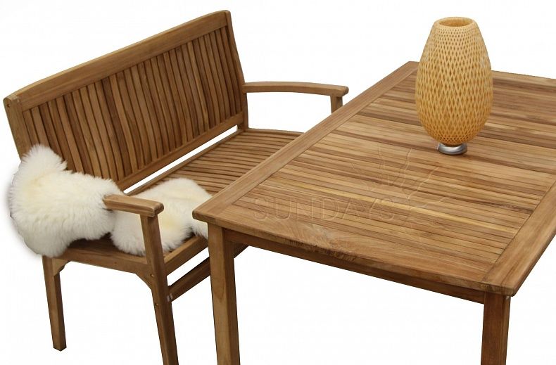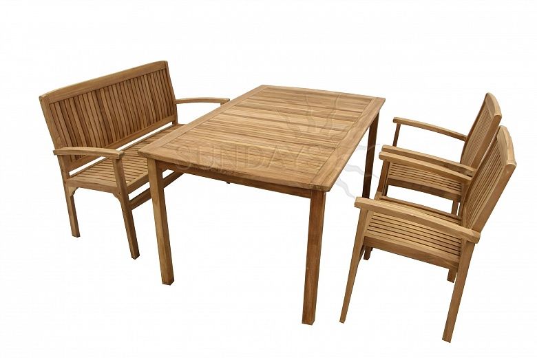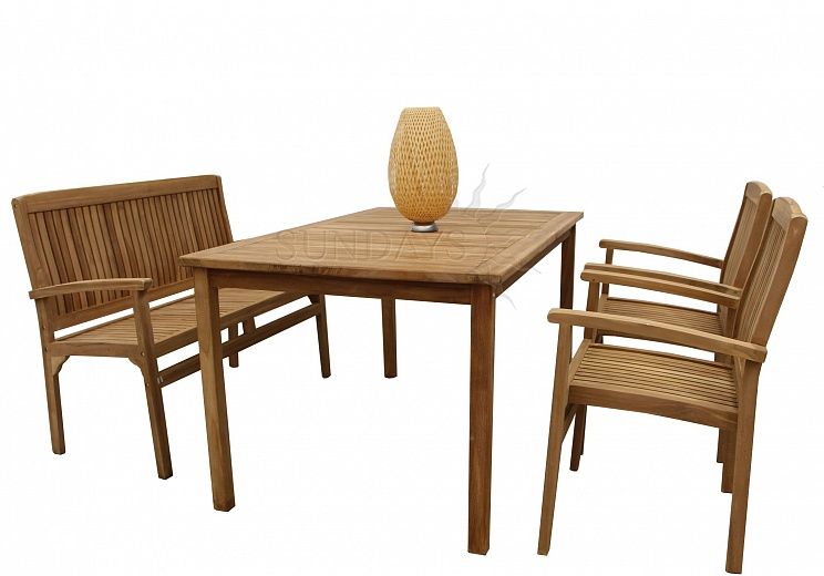 Sundays BALI TGF-165/087/150 - это стильный и практичный комплект садовой мебели. Набор мебели комплектуется прямоугольным столом, двухместной скамьей и двумя стульями. Стулья Bali Sundays TGF-087 можно штабелировать, что позволит сэкономить пространство при их хранении. Комплект изготовлен натуральной древесины тикового дерева, в производстве садовой мебели использование древесины тикового дерева очень популярно, так как она хорошо переносит любые изменения погодных условий, устойчива к всевозможным вредителям и неприхотлива в уходе. Мебель из данного материала имеет однотонный золотистый оттенок и плотную внутреннюю структуру, такой комплект садовой мебели отлично впишется в природный ландшафт вашего сада.