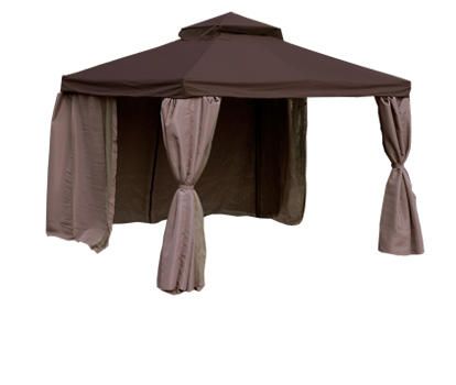 Шатер LEGEND имеет приятный, практически сказочный внешний вид, который легко украсит ваш сад или загородный участок. Тент сделан из надежного плотного полиэстера с покрытием из ПВХ бежевого и темно-коричневого цвета. По бокам предусмотрены раздвижные антимоскитные сети. Этот шатер имеет полезную площадь в 9 м2: внутри можно разместить комплект садовой мебели и наслаждаться уютным летним отдыхом в приятной компании или в тесном кругу семьи. На крыше тента имеются отверстия для вентиляции, препятствующие застаиванию теплого воздуха под куполом. Этот уютный тент сможет защитить от палящего солнца и легкого летнего дождя. Во время сильного ветра и ливней этот тент не рекомендуется использовать.