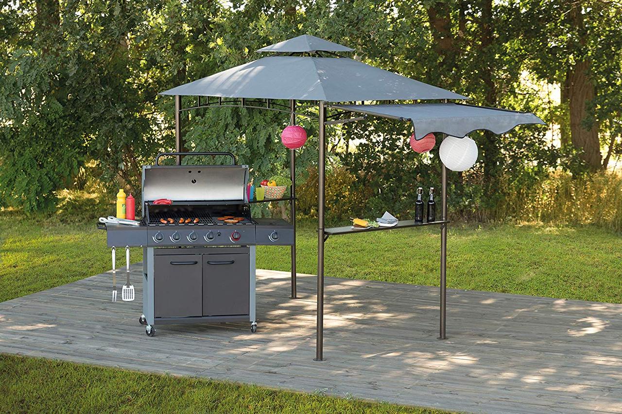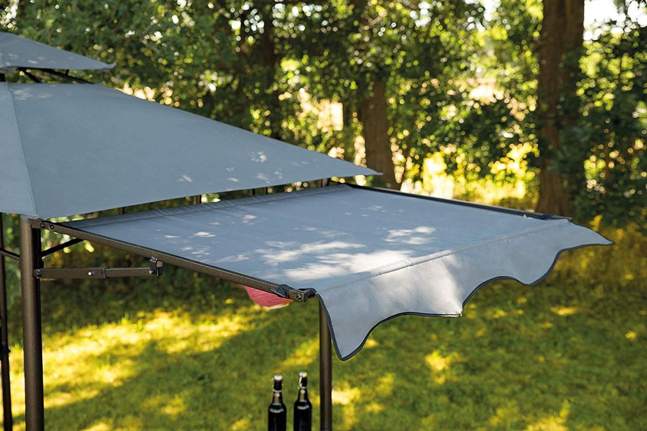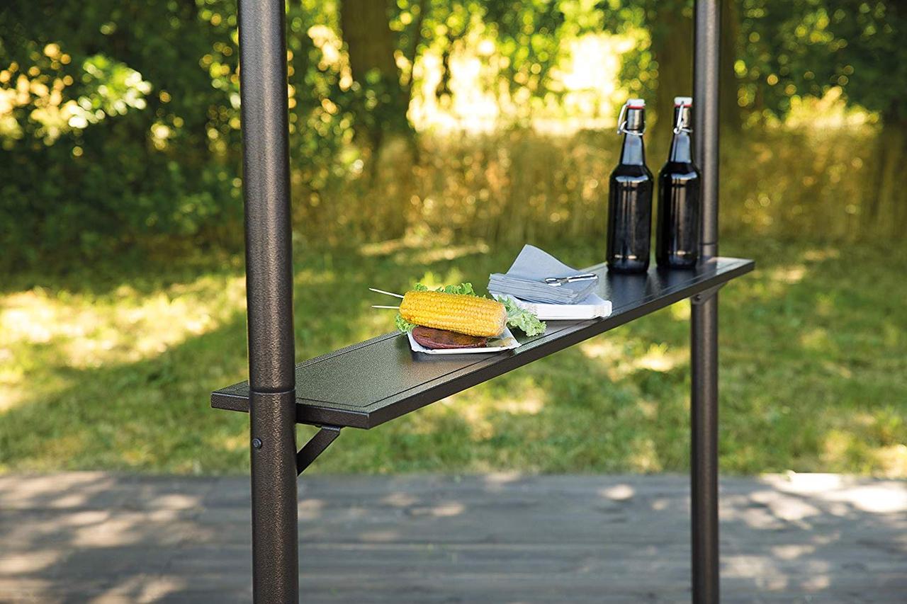 Садовый шатер с гибким навесом - отличное решение быть на свежем воздухе и в то же время иметь крышу над головой, особенно в жаркие солнечные дни. Красивый шатер можно использовать для мероприятий и праздников на свежем воздухе, для летних вечеринок и семейных встреч на даче. Конструкция прочная с водоотталкивающим PA-покрытием. Навес можно опустить в виде полу-боковины. Шатер оборудован с двух сторон полочками, чтобы можно было поставить напитки или небольшие закуски. В ножках предусмотрены отверстия для колышков.