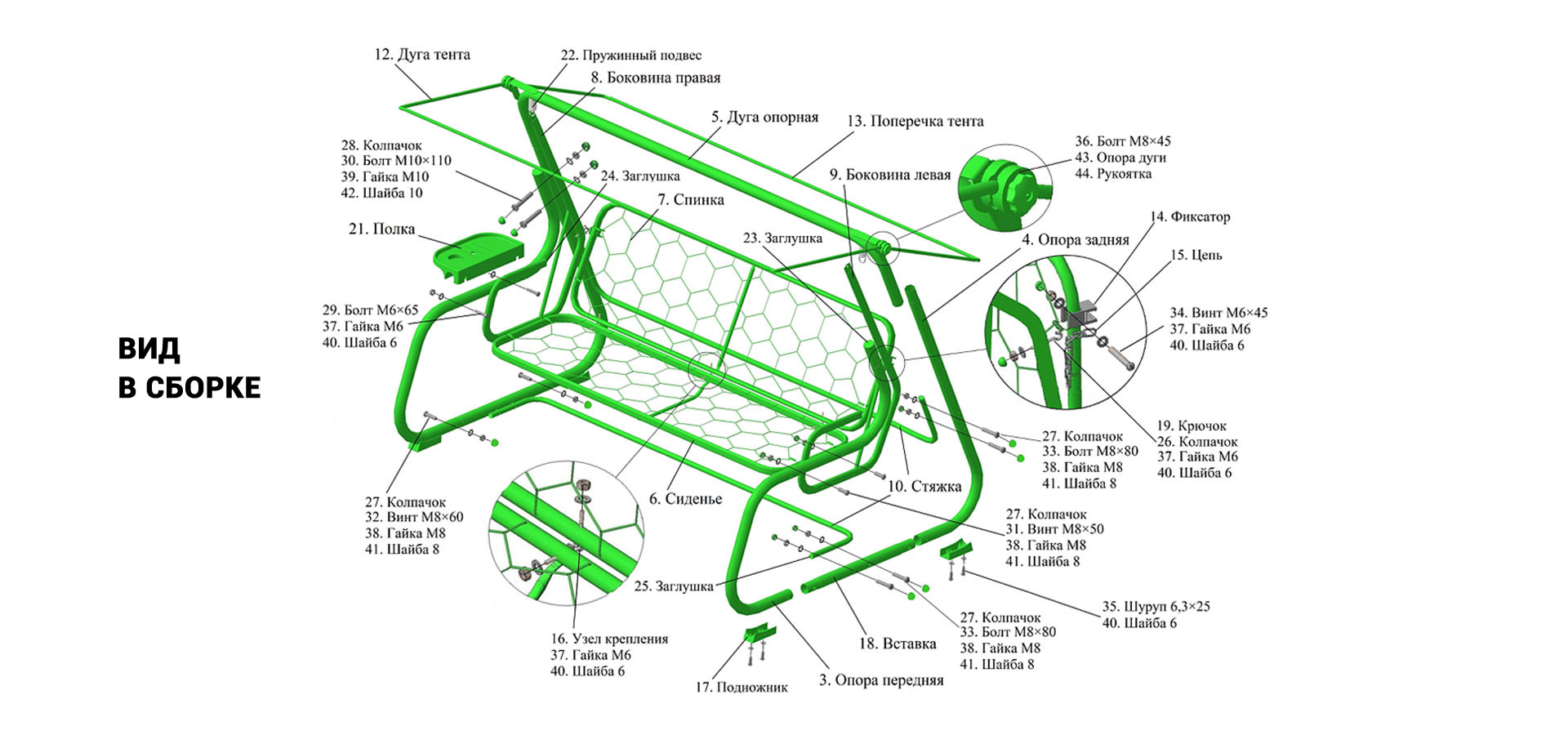 Профессиональная сборка и установка садовых качелей Ольса модель Родео.