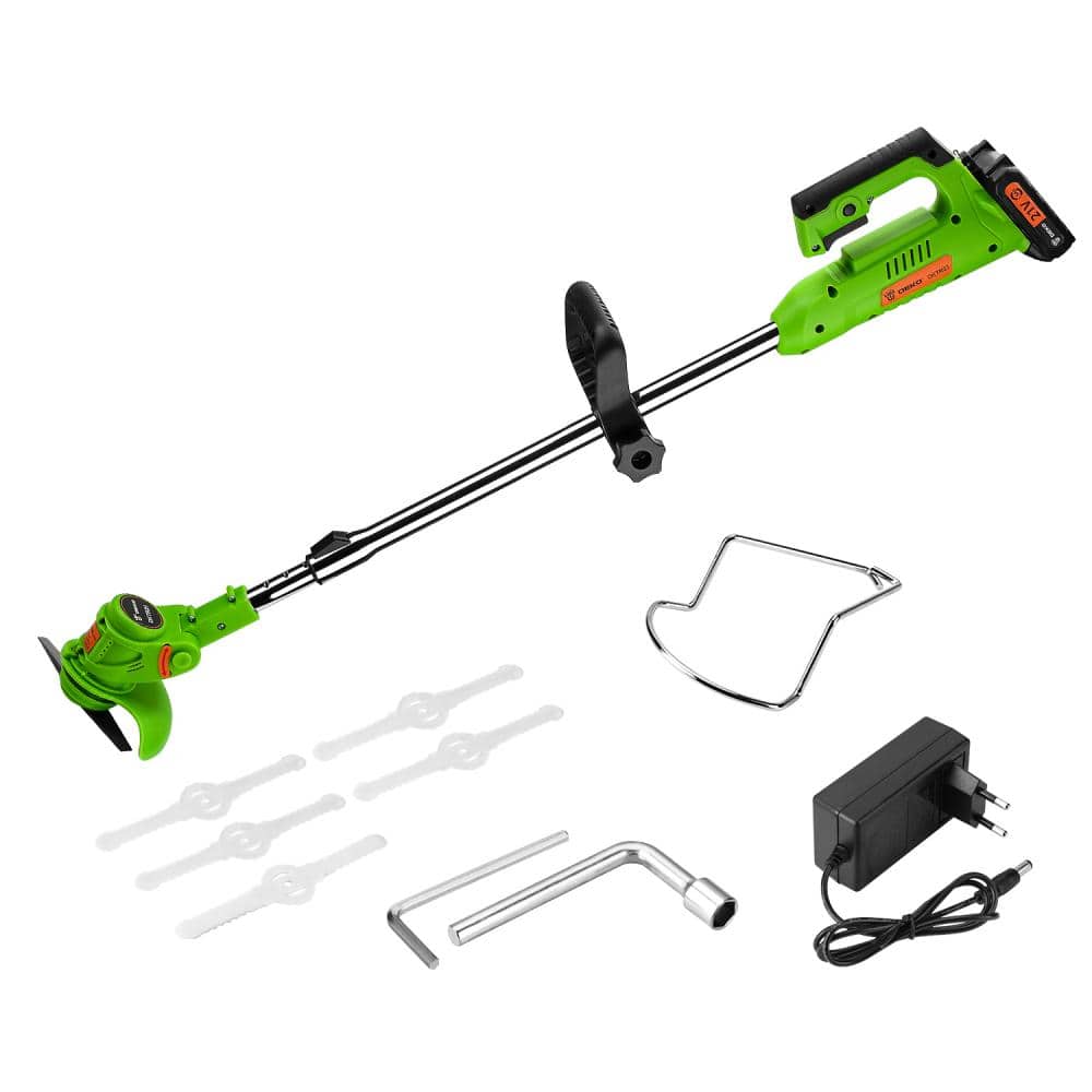 Триммер садовый аккумуляторный DEKO DKTR21 - компактная модель, удобная для скашивания травы в труднодоступных местах, вдоль заборов, клумб, подравнивания газонов, краев садовых дорожек.