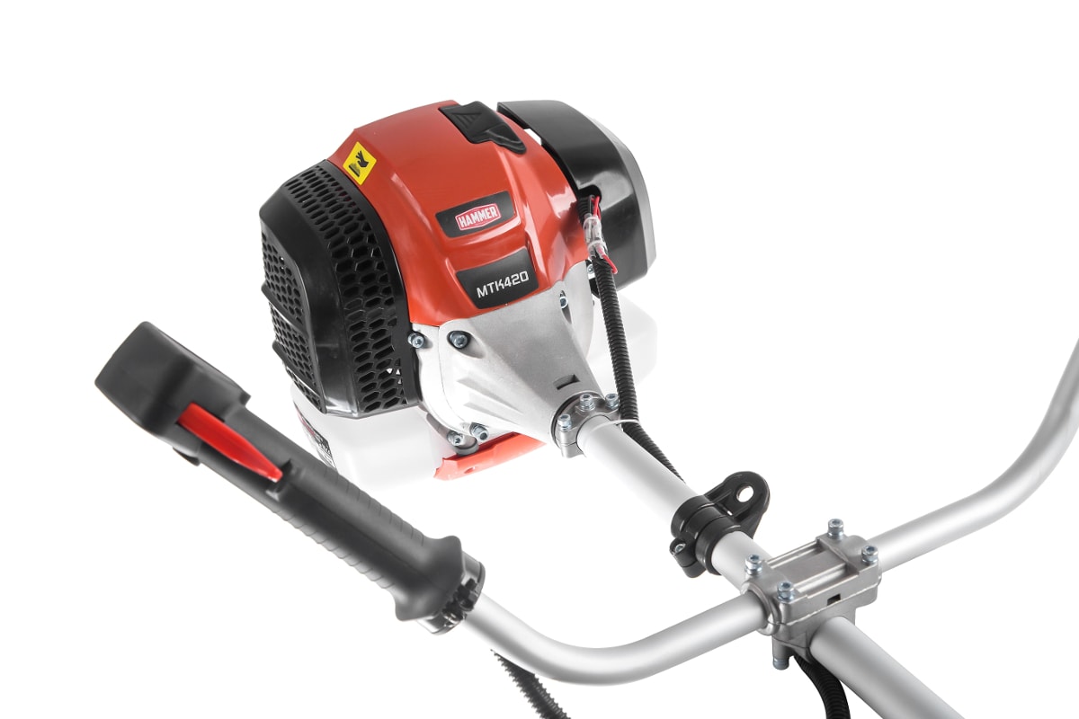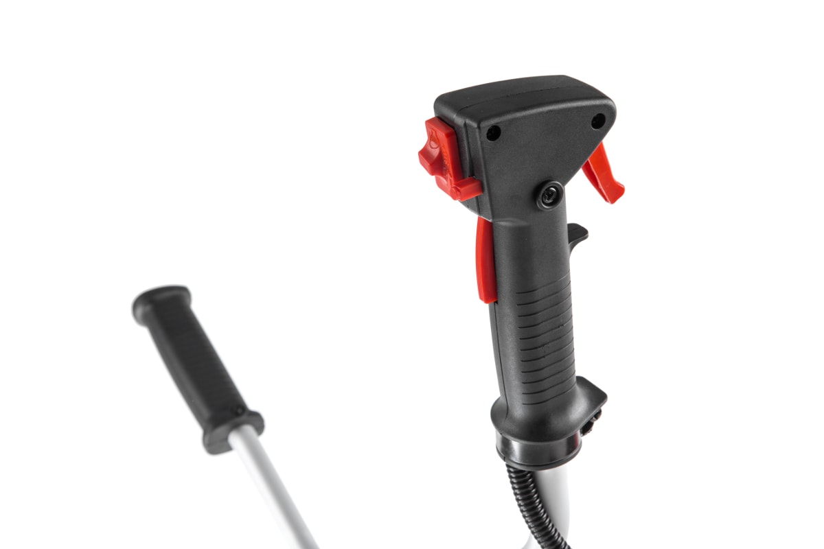 Изогнутая двухручная эргономичная рукоятка, повышающая удобство интенсивной работы мотокосой.