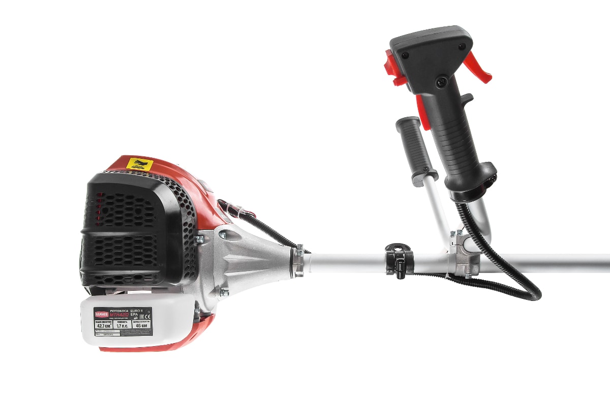 Оптимизированная длина штанги и редуктор с повышенным крутящим моментом облегчают работу и позволяют режущему оборудованию работать параллельно земле.