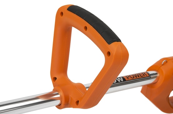 Разъемный алюминиевый вал позволяет без использования инструментов разобрать триммер для компактного хранения.