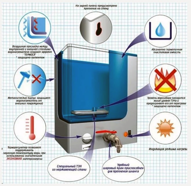 Размеры водонагревателя, (мм): 320х360х425