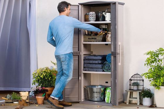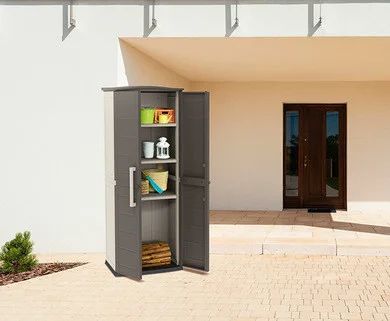 Вместительный уличный шкаф Boston base compact tall сможет поместить в себя множество разных садовых инструментов и аксессуаров, необходимых для работы на участке.