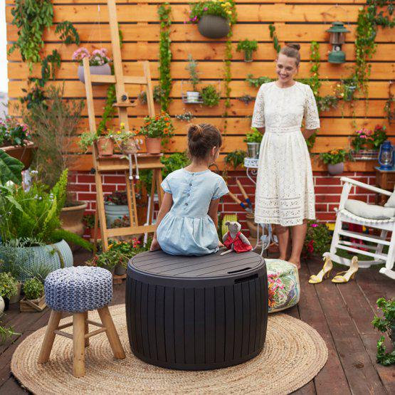 Столик с функцией сундука Circa Wood Box порадует своим дизайном и практичностью. Стол- сундук уникален своей прочностью и надежностью конструкции, выполнен из полипропилена - материала, обладающим высокой устойчивостью к любым погодным условиям, УФ-излучению, не требует ухода. Округлая форма, вид кофейного столика и функция хранения также являются преимуществами данного столика.