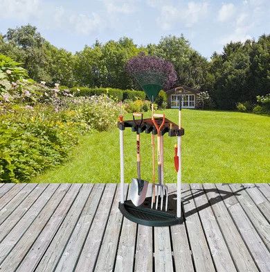 Угловая стойка для хранения садовых инструментов поможет содержать ваш инвентарь в чистоте и порядке. Чтойка имеет отверстия для лопаты, грабель и других приспособлений. Полка легко монтируется, есть возможность зафиксировать для большей устойчивости на стене/двери гаража, подвала, хозблока ( серии Oakland) или кладовки. Поставка выполнена из высококачественного полипропилена и устойчива к неблагоприятным погодным условиям и механическим повреждениям.