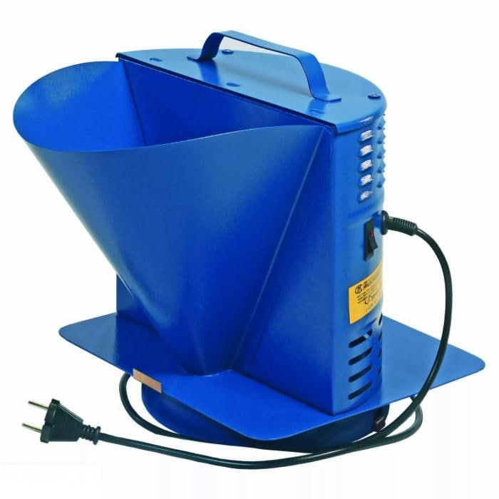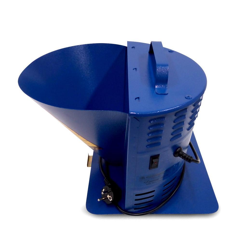 Однофазный электродвигатель, мощностью 1300 Вт, позволяет достигать частоты вращения 1200 об/мин. Закреплённый на валу электродвигателя нож из прочной, углеродистой стали, обеспечивает качественный процесс дробления. Сетка-решето, входящая в комплект, имеет отверстия 5 мм. Для получения других фракций зерновой смеси предусмотрена возможность смены сетки-решета. Регулирование подачи зерна осуществляется при помощи заслонки.