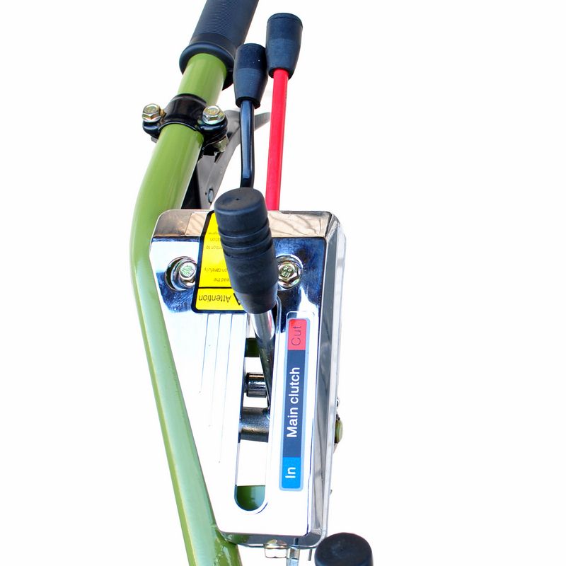На правой рукоятке расположены рычаг блокировки правой полуоси (дифференциал), а также основной рычаг сцепления (удобен при работе на низких скоростях), вспомогательный рычаг сцепления ( позволяет включать сцепление большим пальцем правой руки - в этот момент обе руки удерживают мотоблок) и рычаг экстренного отключения сцепления, который также можно нажимать большим пальцем правой руки - в этот момент обе руки удерживают мотоблок.