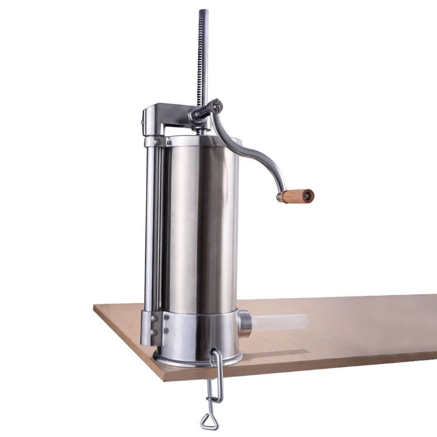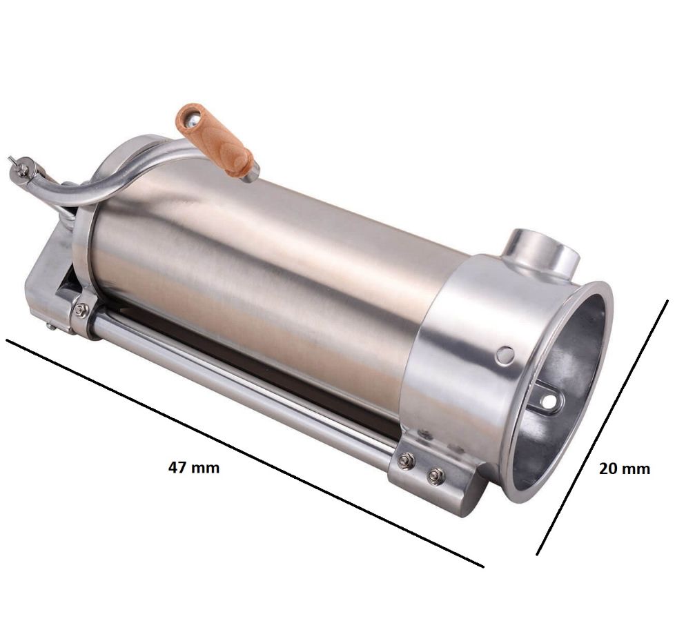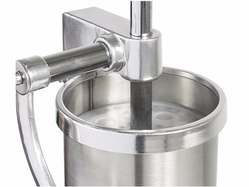 Прост в использовании и уходе. Загрузка фарша в цилиндр занимает не более 1 минуты. Подача фарша происходит путем вращения ручки. После завершения работы все составляющие колбасного шприца легко помыть под краном.