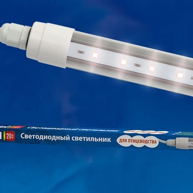 Светильник для птиц светодиодный линейный ULY-P61-20W/SCEP/K DC24V WHITE , 1250мм, c коннектором спектр для яйценоскости IP65 бел. UL-00001608