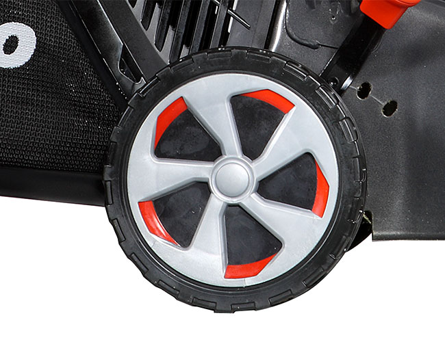 - Благодаря тяговым колесам газонокосилки вы можете справляться с уклоном и пересеченной местностью