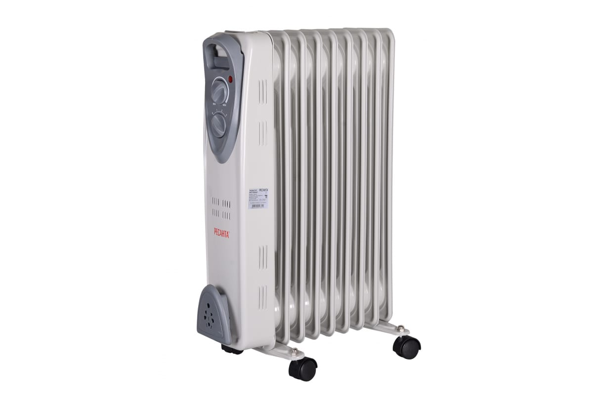 Масляный радиатор Ресанта предназначен для обогрева воздуха и создания комфортной атмосферы в холодное время года. В металлическом корпусе находится масло, нагреваемое до высокой температуры при помощи нагревательного элемента. Далее радиатор отдает тепло помещению. Масляный радиатор оснащен термостатом, что позволяет ему автоматически поддерживать в помещении заданную пользователем температуру. Существенным плюсом является и то, что он обладает низкой температурой корпуса, благодаря чему практически не выжигает кислород в помещении.