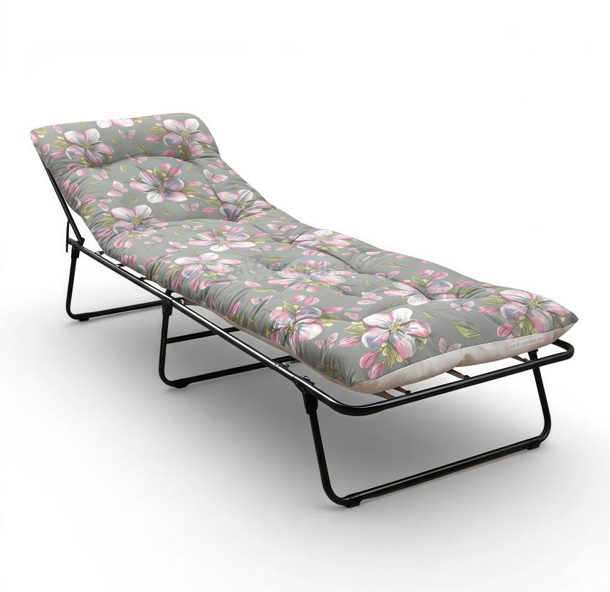 Матрас: ткань 45% п/э – 55% хлопок, плотность 108 – 111 г/м2, ткань полипропиленовая наполнитель крошка поролона, фиксация к каркасу осуществляется с помощью пружин.