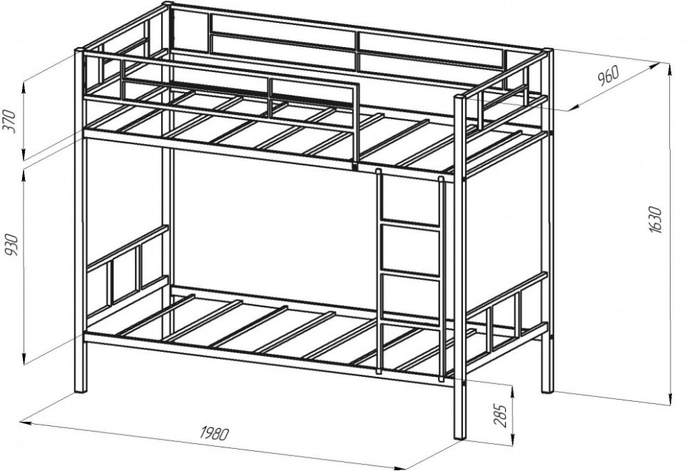 Металлическая двухъярусная кровать . Возможна многократная сборка и разборка кровати.