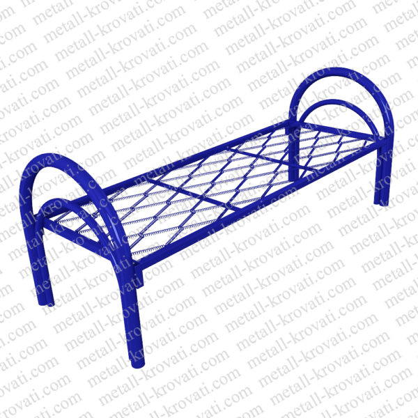 - Тип: одноярусная кровать металлическая односпальная, с двумя ребрами жесткости, круглыми спинками и двойными ножками
