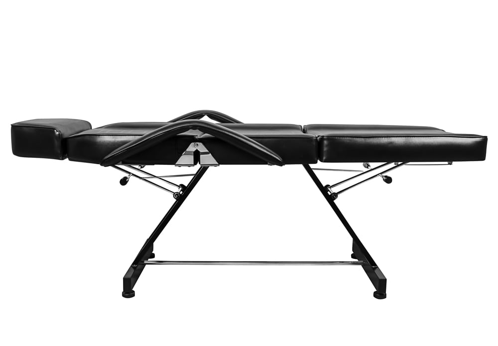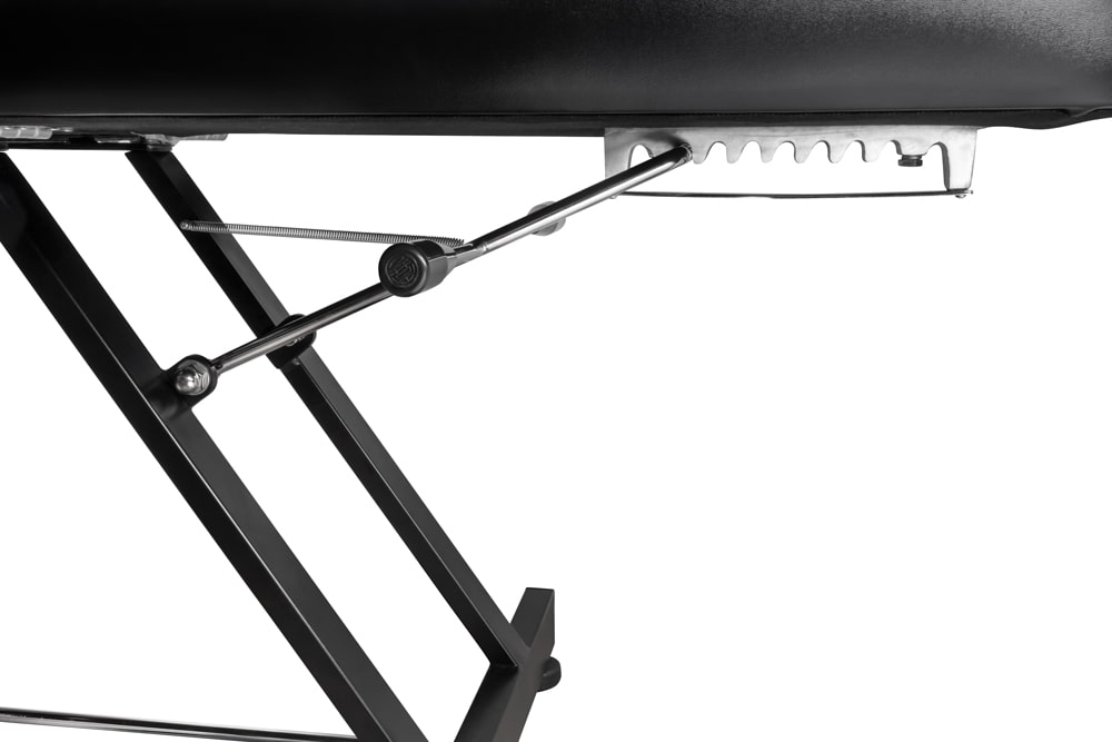 Каркас стола сделан из прочного стального сплава. Сталь не деформируется, выдерживает ежедневную нагрузку, не портится от попадания влаги, не подвержен коррозии. Каркас обеспечивает прочность и устойчивость конструкции в любом положении, выдерживает нагрузку в 150 кг. Благодаря данной конструкции клиенты могут полностью расслабится и наслаждаться процедурой, а мастера продуктивно работать.
