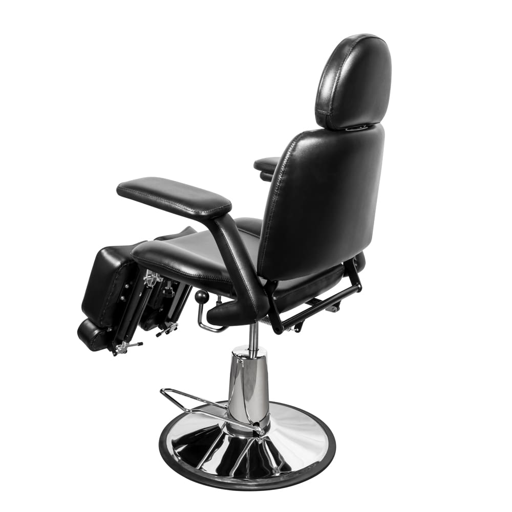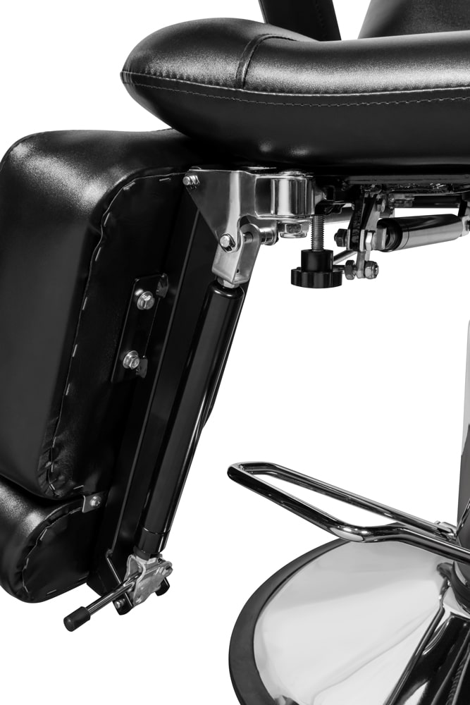 - Высота регулируется с помощью газлифта, наклон спинки регулируются механическим путем и отклоняется на 45 градусов. Подножный упор так же регулируется по подъему и разводу 80 и 45 градусов соответственно. Все эти регулировки позволяют мастеру быстро и легко настраивать положение кресла, как это необходимо не только для удобства клиента, но и для максимальной эффективности работы мастера.