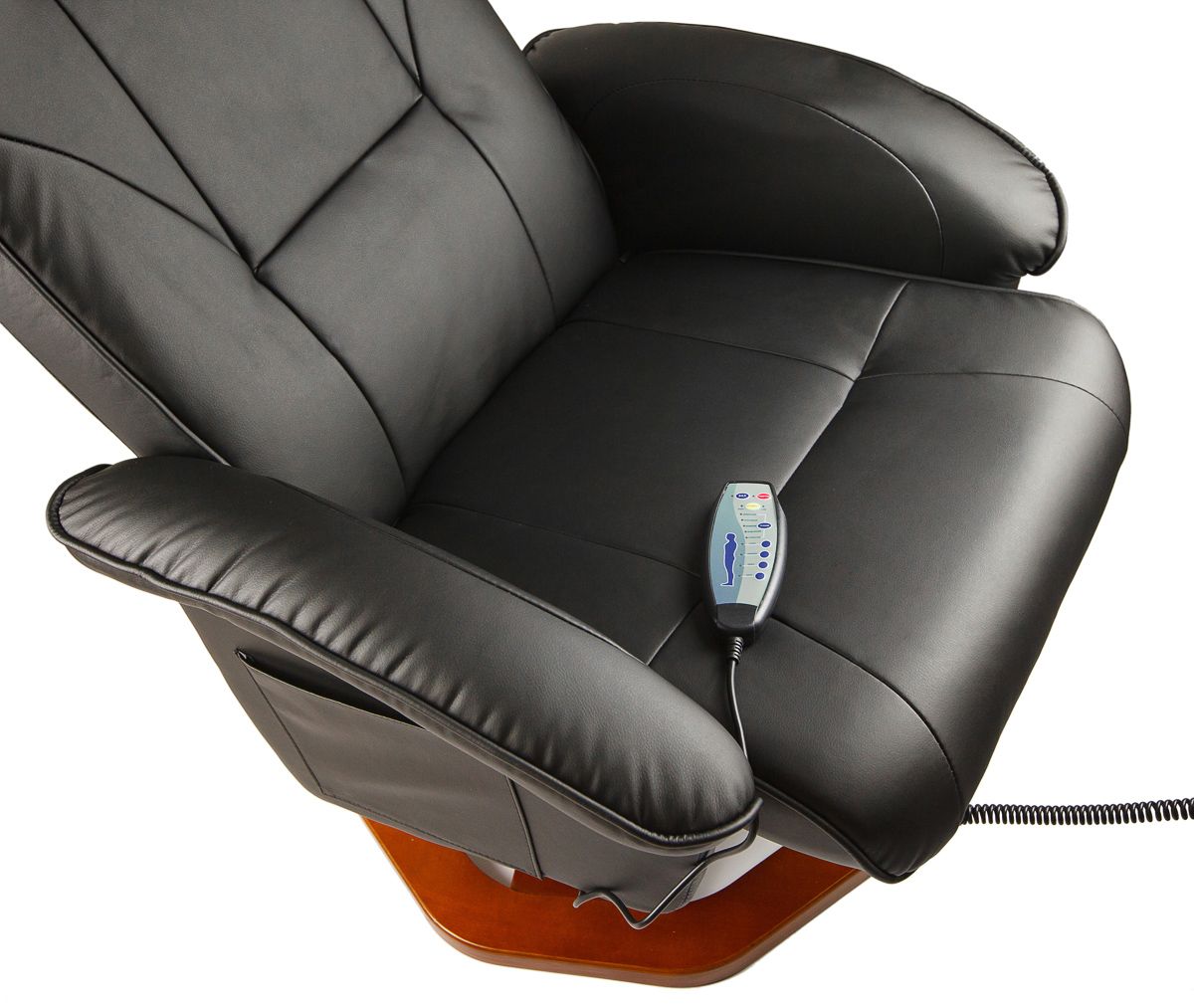 Обивка выполнена из высококачественной экокожи • 8 точечный массаж (6 точек в кресле + 2 в пуфе) • 10 программ массажа • Ножки из натурального дерева • Функция таймера • Регулируемый наклон спинки в 120 ° - 125 ° • Эргономичная спинка • Удобные подлокотники • Питается от сети ~230В