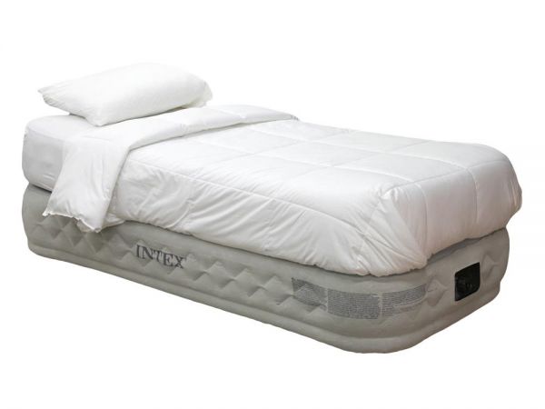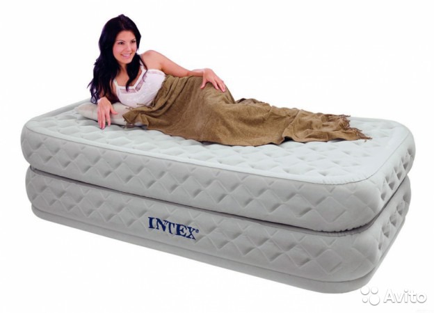 Intex 66964 Твин Суприм – это надувная высокая кровать, отличающая высоком уровнем комфорта, который не уступает традиционным кроватям. Кровать состоит из двух надувных камер: нижняя часть представляет собой жесткий упругий каркас, а структура верхнего состоит из большого количества перегородок, которые обеспечивают жесткость и сохранение формы благодаря равномерному распределению надутого воздуха внутри. Материал кровати: водонепроницаемый плотный винил, поверхность которого флокирована и не даст соскользнуть простыни во время сна. Встроенный насос обеспечивает накачивание воздухом обеих камер за считанные минуты.