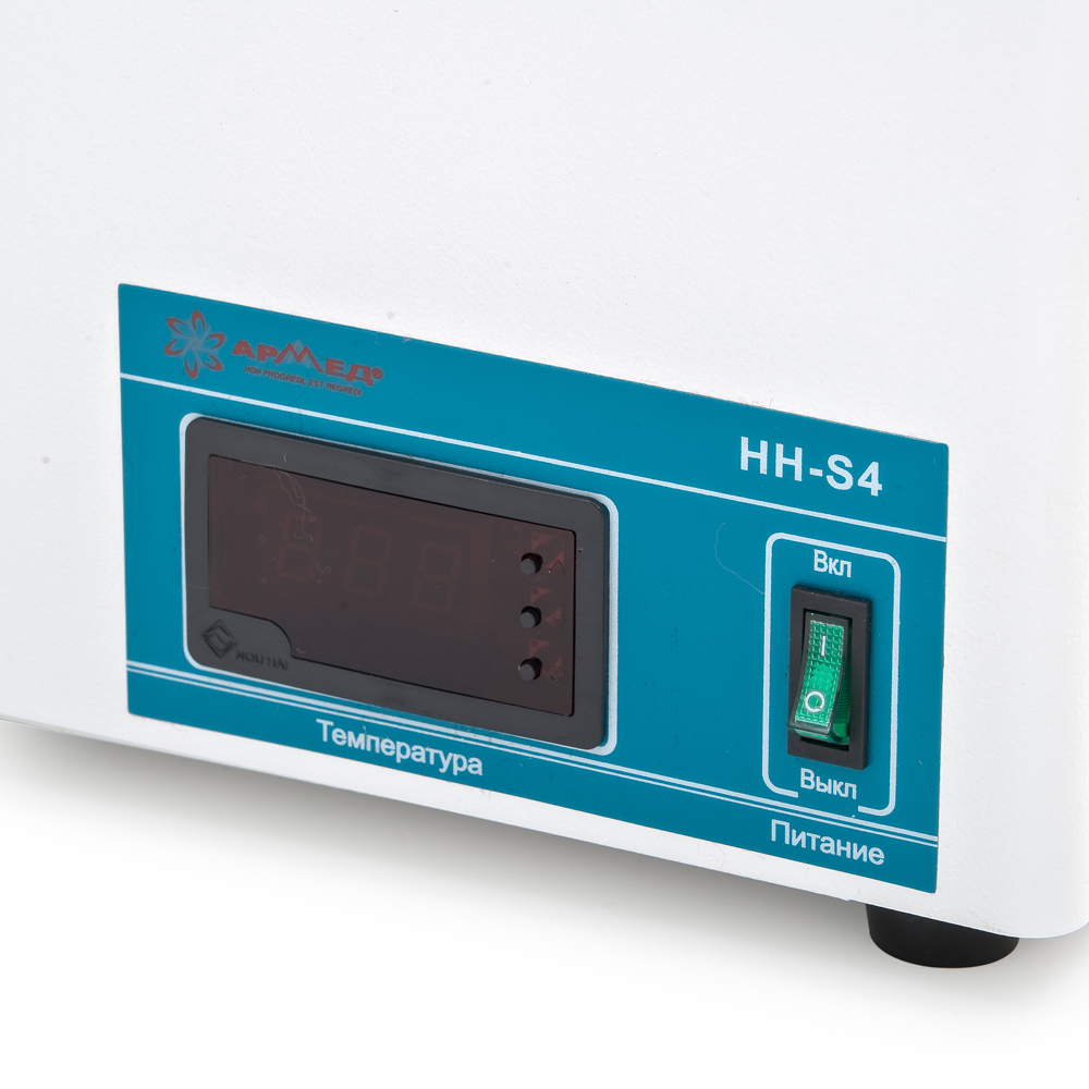 Элементы корпуса бани выполнены из металла с порошковым покрытием, основание и крышки рабочей камеры из нержавеющей стали. Рабочая камера изолирована от корпуса элементами теплоизоляции, что исключает вероятность травмирования пользователя. Крышка камеры имеет четыре секции для установки колб, пробирок и других емкостей, разного диаметра. Управление баней осуществляется микроконтроллером с цифровым табло, благодаря чему получается высокая точность поддержания температуры и простота технологического процесса.